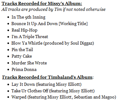 La sortie de l’opus de Missy Elliott se confirme pour le début de l’année prochaine. La chanteuse a signé chez Atlantic en aout dernier et a fini l’opus qu’elle a déjà fait écouter au label qui semble enthousiaste. Elle décrit ce projet comme étant ” cinématographique” et ” arrogant” à l’instar de son album” Da Real World” et veut ramener le son 90’s avec une pointe d’influences futuristes. Timbaland est le principal producteur de l’album et Busta Rhymes est en featuring vu qu’il a aussi assisté à la présentation du projet.