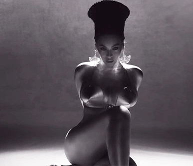 Beyoncé arbore souvent l’afro mais dans cette scène particulière de son clip “Sorry”, elle prend les traits de Nefertiti. La fameuse reine égyptienne, 3e femme du roi Akhenaton, connue pour sa grande beauté et lucidité. Son nom signifie “la belle est venue“.