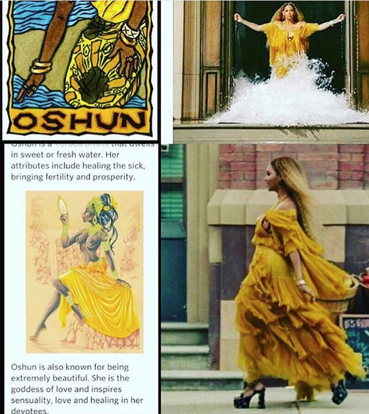 Dans la vidéo du titre “Hold Up”, où elle déambule dans les rues, énervée et agacée comme une Kelis dans le clip de “Young Fresh and New”, elle s’est déguisée en Oshun. C’est la déesse de la beauté, de la spiritualité et de l’eau. Elle est surtout reconnue à Cuba, au Brésil et dans certains pays d’Afrique de l’est.