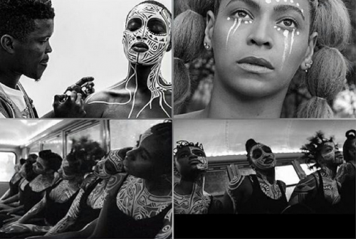 Toujours, inspirée par la culture Yoruba, Beyoncé a fait appel à Laolu Sebanjo, un artiste nigérian qui pratique de la peinture corporelle, en restant fidèle aux traditions de sa tribu. On le retrouve dans plusieurs clips “Sorry”, “Daddy’s Little Girl”, “Love Drought” ou encore “Forward“. Il qualifie son univers “d’Art sacré d’Ori”, ori signifiant en Yoruba essence, âme, destinée.