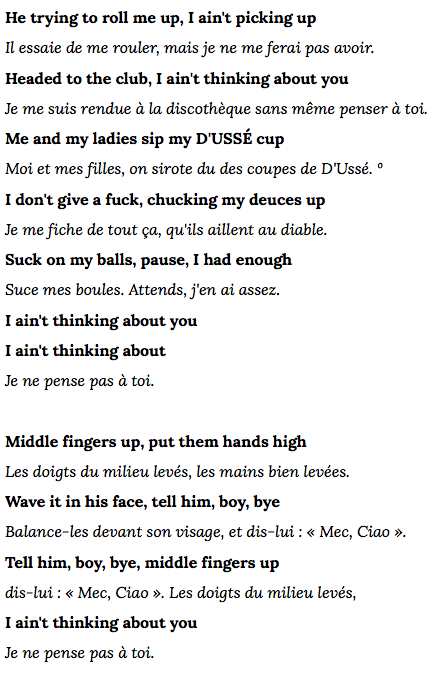 S’aimer n’est pas une mauvaise chose, au contraire, mais le fait de vouloir se prophétiser autant, quand de l’autre côté, on est jamais clair sur les points qu’on veut aborder sur sa propre vie privée est un souci dans l’ensemble de ce projet. Elle veut garder son image de femme de pouvoir, parfaite, tout en bénéficiant des arguments de la femme fragile et sympathique à laquelle tout le monde peut s’identifier. Ce ne sont pas 2 choses qui s’opposent en réalité, mais la dichotomie vient ici de la manière très froide, très peu humaine dont tout est présenté. Si elle a été trompée, elle le dit au moment où elle veut le dire, de la manière dont elle veut le dire et pile au moment où elle sort un album. On ne peut nier une exploitation claire de la chose. De la même manière, si elle n’a pas été trompée, quelle est la femme qui voudrait ou aimerait voir son mari accusé d’infidélité à la face du monde, juste pour vendre un album? Quelle est la féministe qui commence un album en disant qu’elle prie pur que son homme la trouve entrain d’épier ses messages, et le termine en disant que “lorsqu’il la b**se bien, elle l’amène au restaurant?”.
