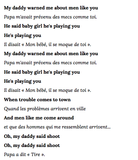 En revanche, Beyonce s’aime beaucoup. Si on donne du crédit à ses dires, on est censé donner du crédit à tous ses dires et aussi au nombre hallucinant d’ego-trip qu’elle a pondu depuis le début de sa carrière. Bow Down, Feeling Myself, Updrage U, etc. C’est un personnage qui voit quand même tout en restant centré sur elle. Elle ne détache pas sa vision du monde de la vision qu’elle a d’elle-même et si on en doutait encore, les paroles du duo avec Jack White sont à cet effet très intéressantes.