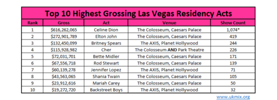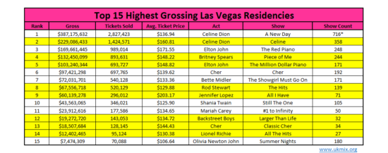 Et là, c’est J.LO qui prend une nouvelle fois la main. Elle a rapporté plus de 60 millions en 71 shows, tandis que Mariah n’a rapporté que 23 millions. Elle triple carrément les revenus des ventes de billets de Mariah, ce qui pour le coup lui donne la main sur cette manche. Elle est bien celle qui est la plus rentable sur les shows de Vegas, et c’est d’autant plus intéressant qu’elle est la plus chère.