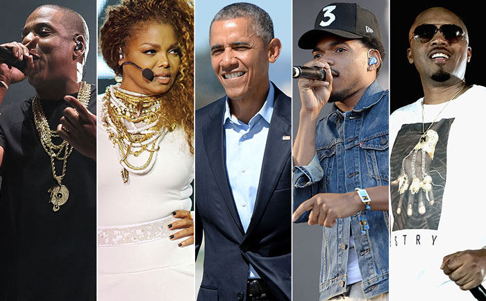 Obama dévoile sa playlist estivale avec Chrisette Michelle, Nas, Jay Z, Chance the Rapper, & Janet Jackson.